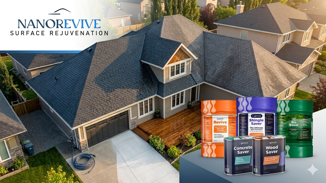 Cost-Effective Restoration: Skip the expensive and disruptive tear-off. NanoRevive restores your existing roof at a fraction of the cost of replacing it. Eco-Safe Protection: Our powerful treatment eradicates moss, algae, and organic buildup, but is completely safe for your pets, plants, and the environment.