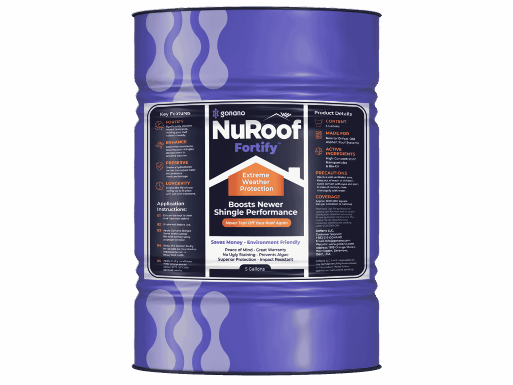 NuRoof Fortify™: Extreme Weather Defense for Newer Roofs Protect your investment from the elements. Designed specifically for asphalt roofs under five years old, NuRoof Fortify™ acts as a preventive shield, offering proactive protection before damage starts: