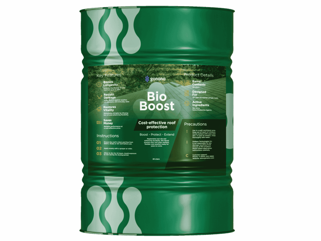 Bio-Boost™: Cost-Effective Protection for Aging Roofs Don’t rush into a premature replacement. Designed specifically for asphalt shingle roofs 10 years and older, Bio-Boost™ is a sustainable treatment that provides practical protection when your roof begins showing signs of wear:
